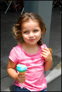 Sit die klomp bobbejane op die stoep en roomys eet - reg voor 'n Community Project winkel waar daar goedere verkoop word wat deur mense in Suid-Afrika en ander Afrika lande gemaak word.